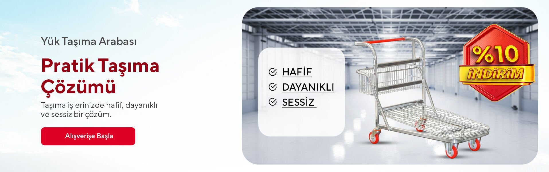 Alışverişin olmazsa olmaz araçlarından olan Alışveriş Arabaları , alışveriş listenizde hiçbir ürünü atlamadan marketi baştan sona gezebilmenizi mümkün kılıyor. İç içe geçerek konforlu bir kullanım sunan ve kolay saklama imkânı veren bu arabalar kilitli, kilitsiz ya da el sepeti modelleri ile mağazaların tüm alışveriş standartlarına kolaylıkla uyum sağlıyor.