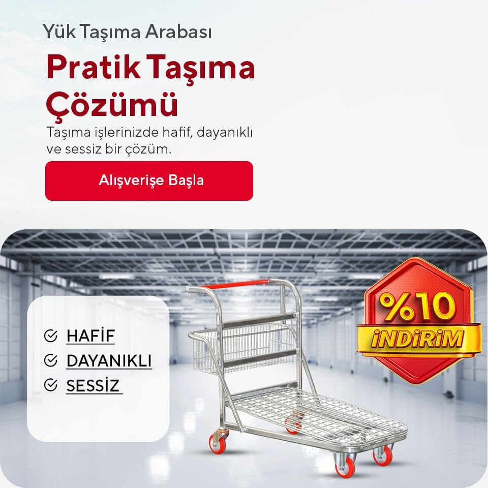 Alışverişin olmazsa olmaz araçlarından olan Alışveriş Arabaları , alışveriş listenizde hiçbir ürünü atlamadan marketi baştan sona gezebilmenizi mümkün kılıyor. İç içe geçerek konforlu bir kullanım sunan ve kolay saklama imkânı veren bu arabalar kilitli, kilitsiz ya da el sepeti modelleri ile mağazaların tüm alışveriş standartlarına kolaylıkla uyum sağlıyor.